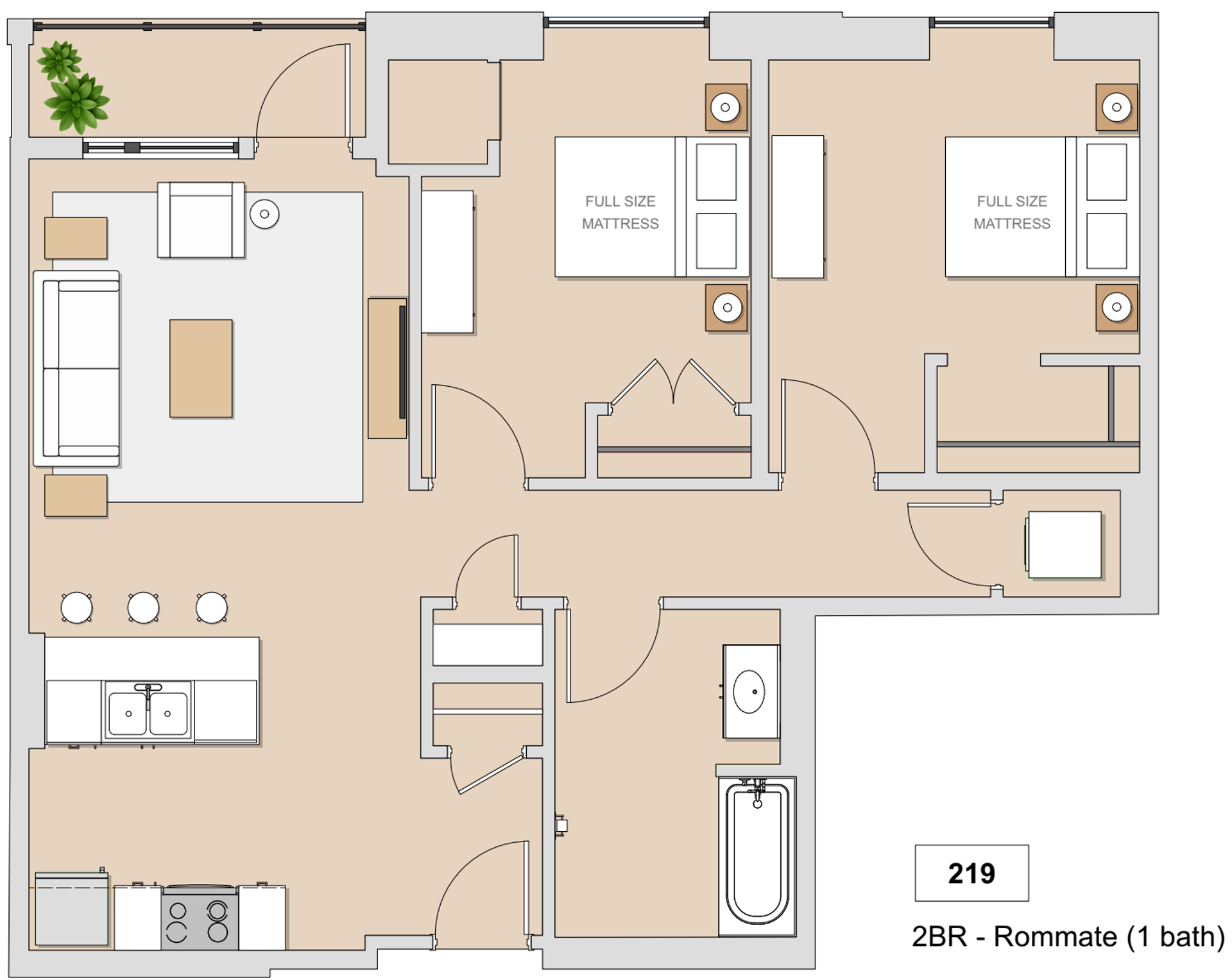 Two-Bedroom, One-Bath Residence | The Pinnacle