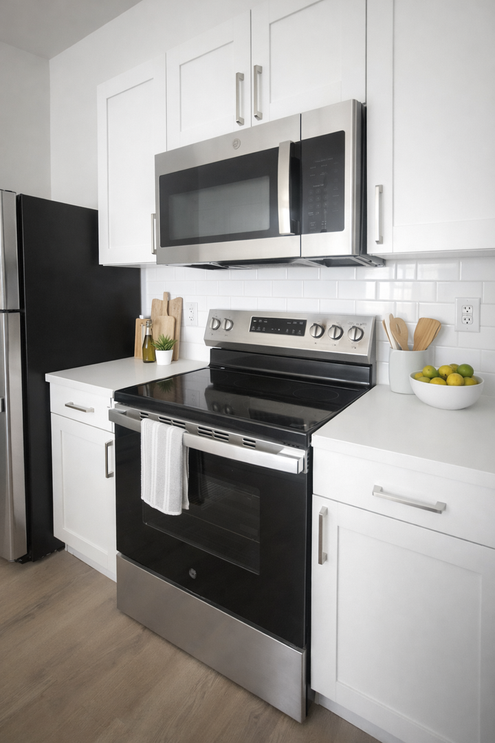 Experience elevated living at The Pinnacle, where modern design meets comfort and convenience. This thoughtfully designed one-bedroom residence features an open-concept layout with floor-to-ceiling windows that fill the space with natural light. Sleek contemporary finishes, wide-plank flooring, and a designer kitchen with stainless steel appliances and quartz countertops create a refined, upscale atmosphere.