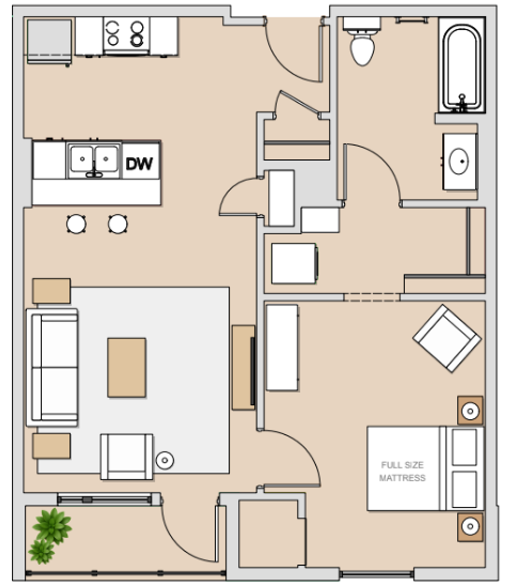 Our brand-new 1 bedroom, 1 bathroom apartments are designed for those who want space, style, and tranquility in one exceptional home. Enjoy a thoughtfully crafted layout with expansive windows that flood your space with natural light, a private balcony to unwind, in-unit laundry for everyday convenience, and modern stainless steel appliances that elevate your kitchen experience.